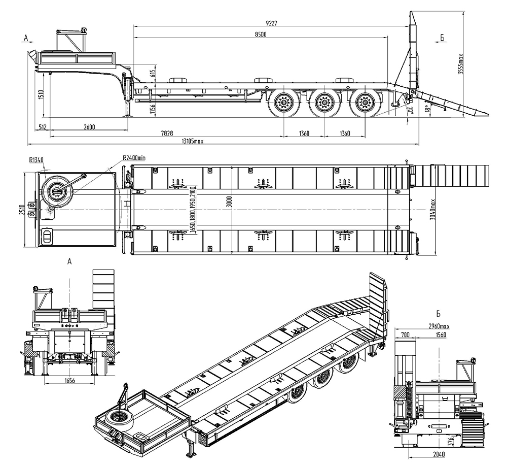 39000 кг, шины 385/65R22,5 или 445/65R22,5/ 6+1, платформа 11461 по трапам) x 2500 с уширителями до 3000 мм, треугольные аппарели, ССУ 1430 мм, пневматическая подвеска, съемные стойки 1500 мм