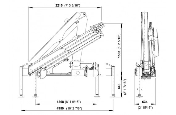 вылет 9.6 м, грузовой момент 5.7 тм, грузоподъемность 3300 кг